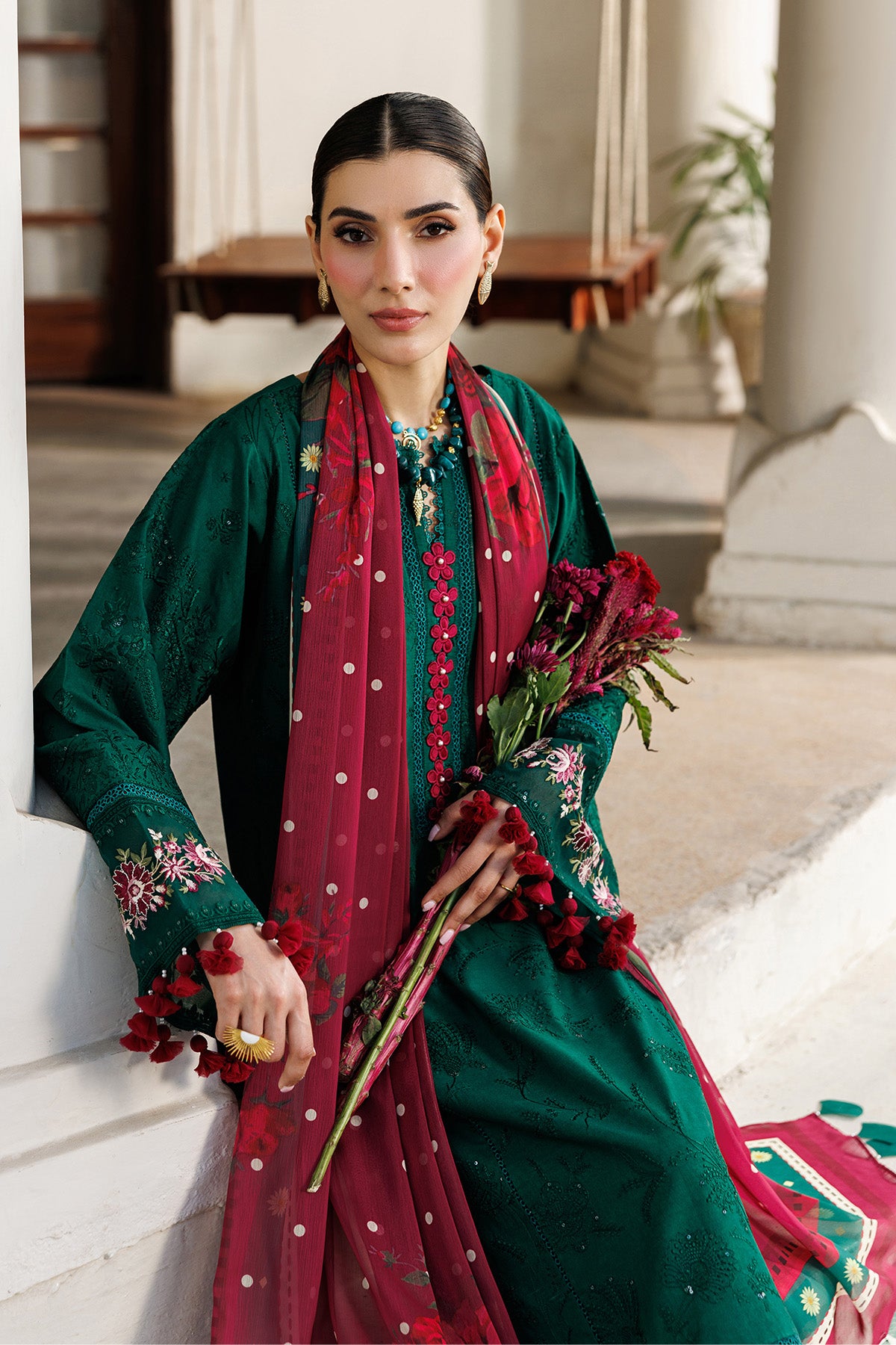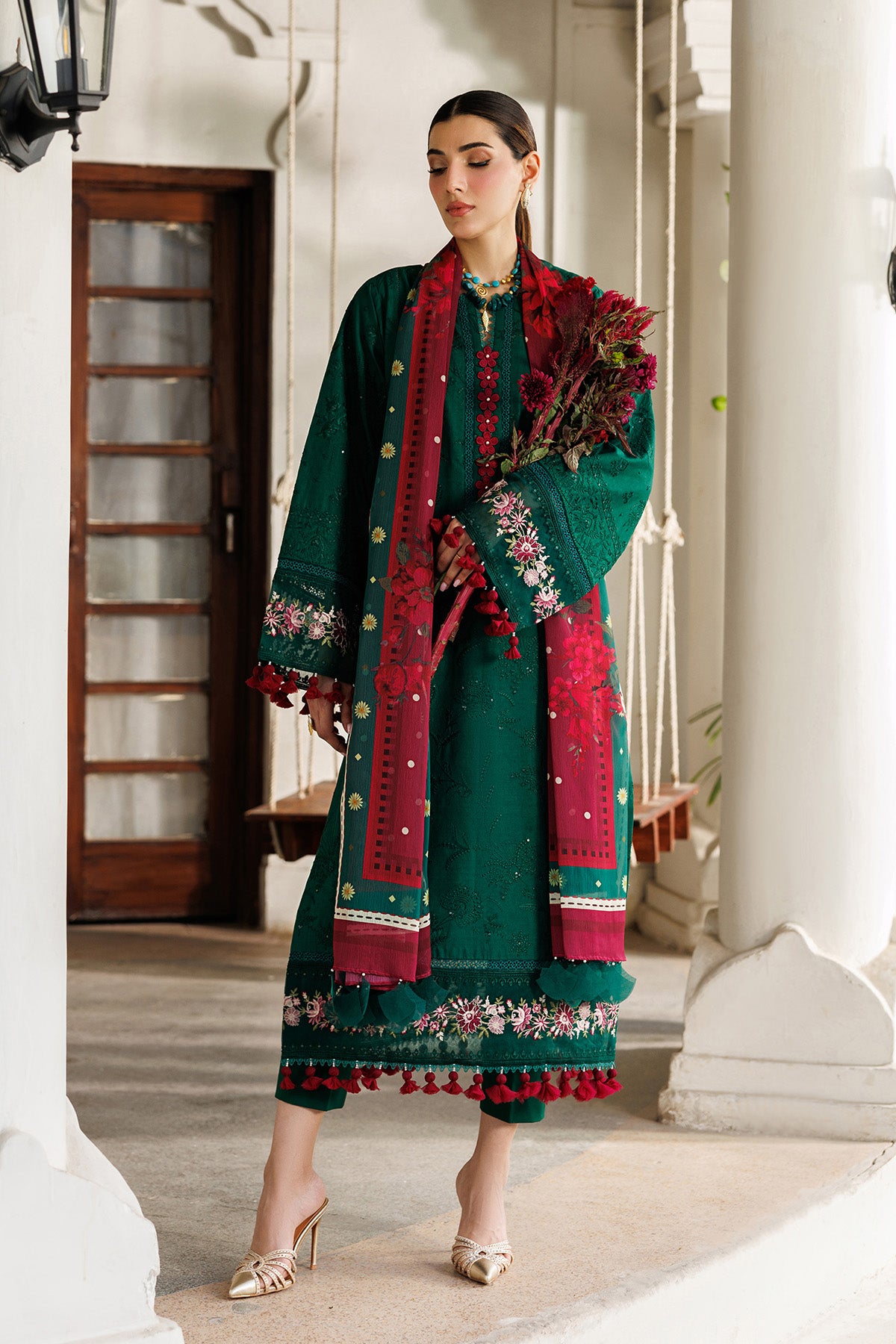 • Stitched includes Shirt, Lining, Dupatta and Trouser all embellished as shown in pictures.