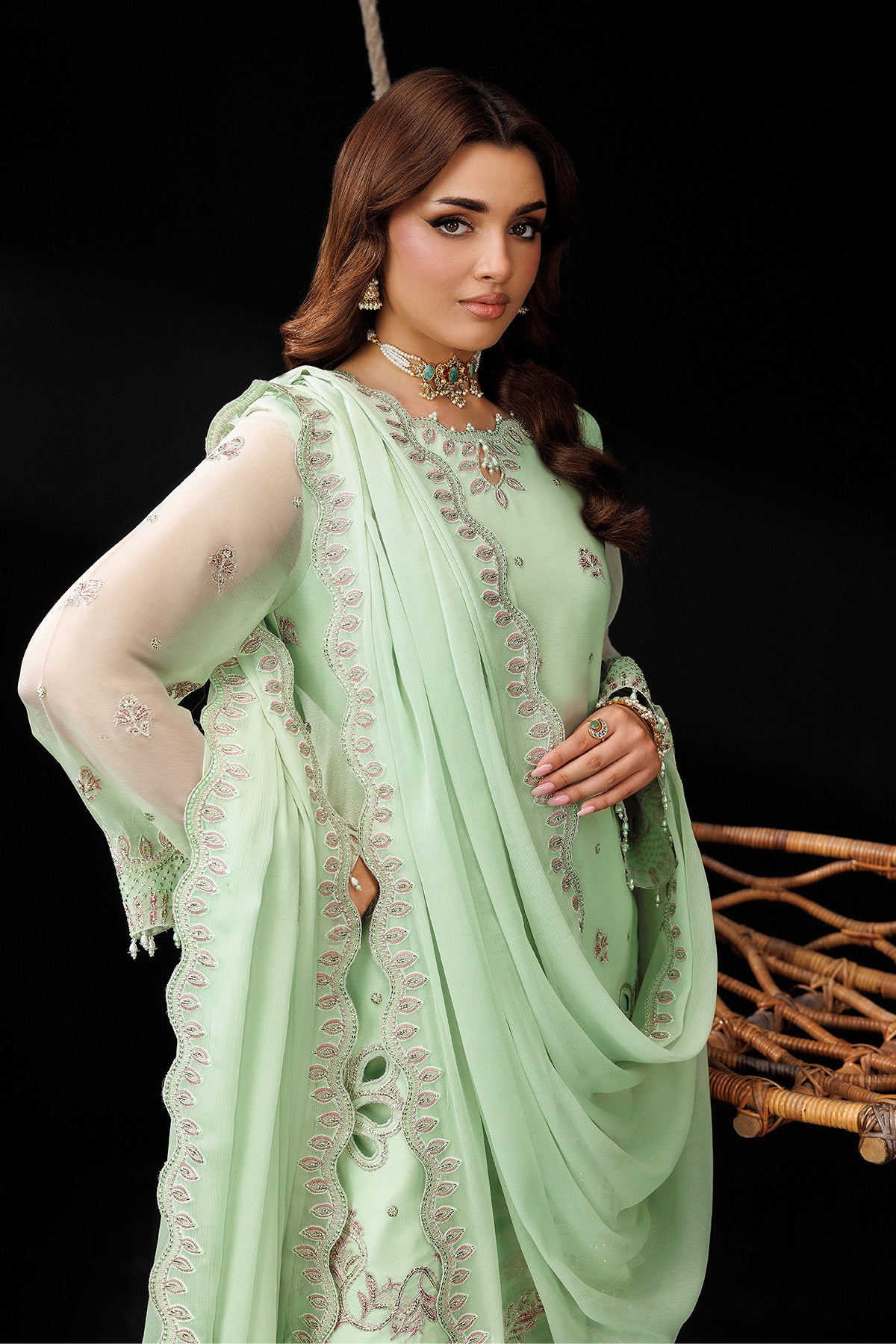 • Stitched includes Shirt, Lining, Dupatta and Trouser all embellished as shown in pictures.