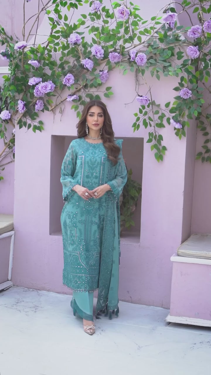 • Stitched includes Shirt, Lining, Dupatta and Trouser all embellished as shown in pictures.
