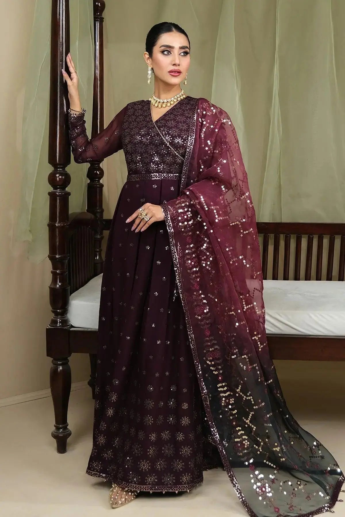 Embroidered Chiffon Front Body Embroidered Chiffon Back Body Embroidered Chiffon Front Embroidered Chiffon Back Embroidered Chiffon Sleeves Embroidered Belt Patch Organza Embroidered + Printed Dupatta Dyed Russian Trouser